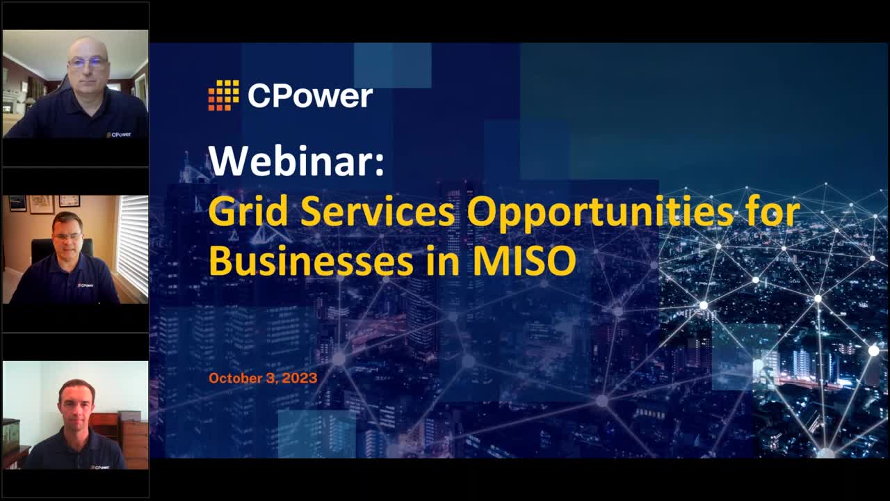 In this informative webinar, CPower will explore the details of how Midcontinent Independent System Operator (MISO) grid services work and what opportunities provide the most opportunity for energy users to achieve financial rewards for supporting the grid. In addition to making money and reducing their electricity costs, many businesses use their grid services earnings to progress their operational and decarbonization goals.